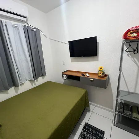 Entre as outras comodidades estão refrigerador, forno e utensílios de cozinha, fornecidos para auto-atendimento. A cerca de 400 metros, os hóspedes podem encontrar um restaurante que serve cozinha saudável. O aeroporto de Fortaleza pode ser alcançado em cerca de 20 minutos de carro de : demonstr/sing/masc.